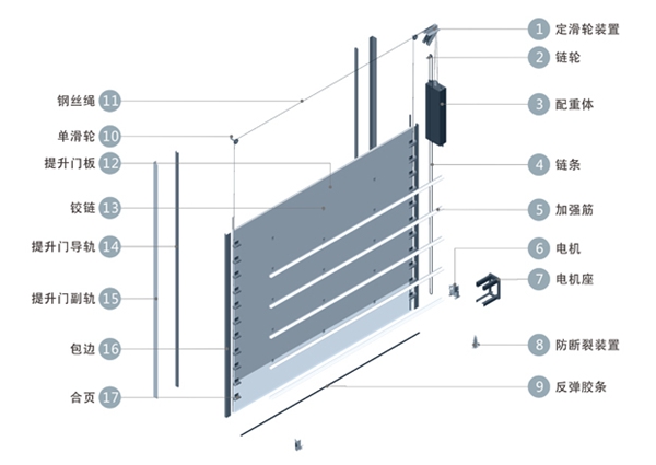 平衡方式及使用寿命 1、配重平衡装置,能永久的保持门平衡状态,保护了驱动部分,电机只需做上下方向性工作;